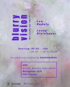 Für Blurry Vision: The Rooms We Inherit ist das Kaeshmaesh vom 06.03. bis zum 20.03. im Kunstraum ADA (Wattgasse 16, 1160 Wien) zu Gast.